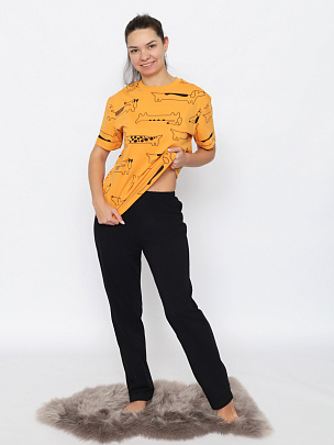 Пижама женская (футболка, брюки) охра