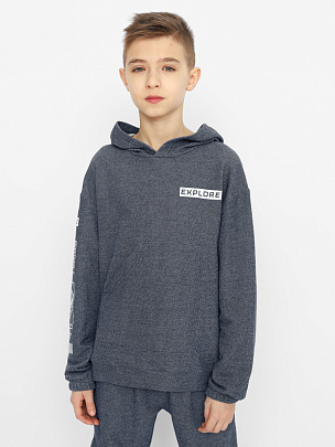 Толстовка мужская прямого силуэта со спущенным плечом, рукава с манжетами. Капюшон с функциональным шнурком. Притачной пояс. Полочка декорирована принтом.